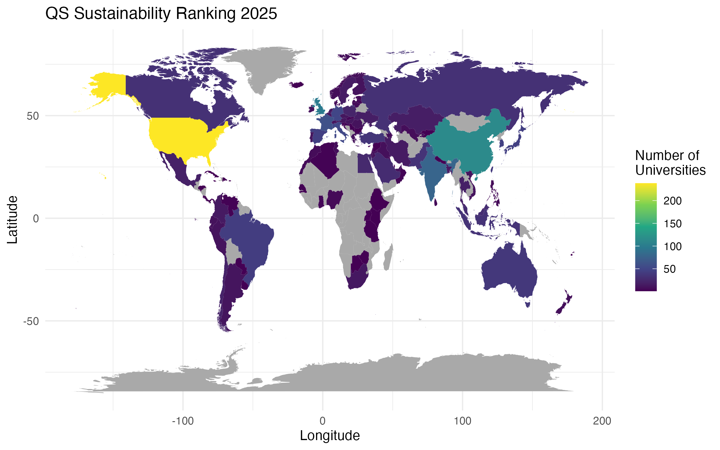 Quacquarelli Symonds (2024) berichtet, dass 1.744 Instiutionen in der Version 2025 geranked wurden. Die Daten zeigen hier jedoch eine Abweichung um eine Einrichtung.↩︎